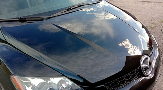Удаление сколов, борьба с коррозией и покраска капота Mazda. Удаление старого лако-красочного покрытия, обработка очагов ржавчины вокруг сколов. Грунтование, покраска и полировка...